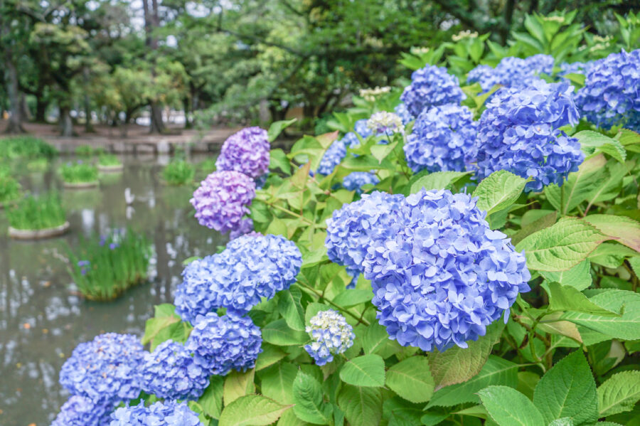 境内は豊かな自然に包まれており、桜、ショウブ、アジサイなど四季折々の花が咲いて、参拝者の目を楽しませてくれます。