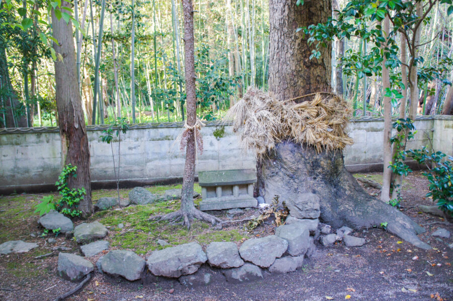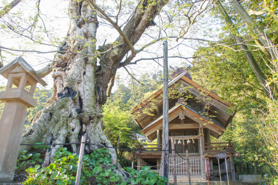 社殿の前に樹齢千年ともいわれる巨大なムクの木があり、大きな生命力や不思議なパワーを感じる人も多いようです。