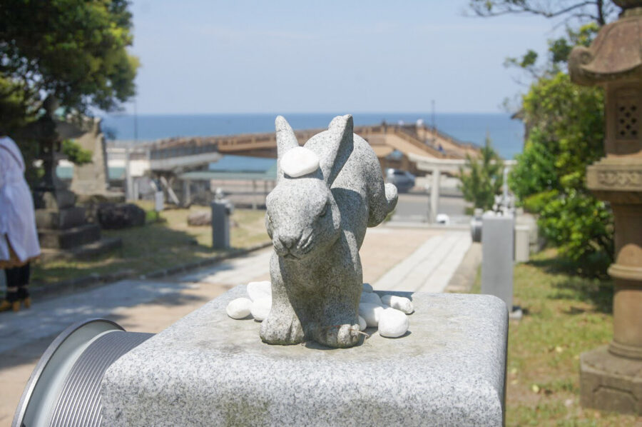 参道には白兎の石像がたくさん並んでいてポーズも様々でかわいいと人気。