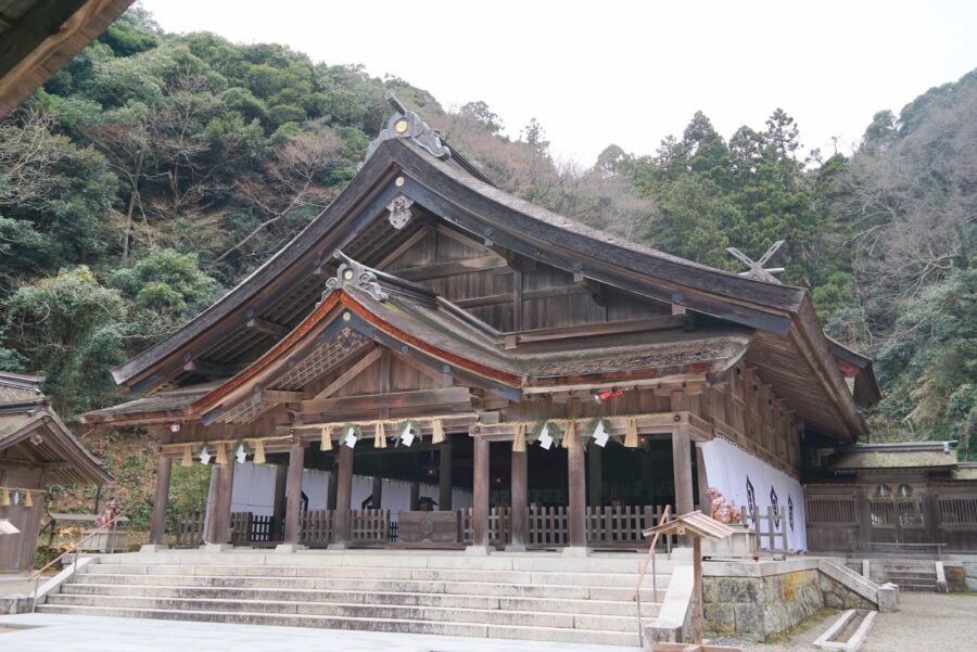 美保神社は全国3000以上あるえびす様の総本宮です。 美保湾を望む場所に建ち、大社造りの本殿が二つ並ぶ珍しい形式の社殿に、大国主神の御后神である三穂津姫命(ミホツヒメノミコト)と御子神である事代主神(コトシロヌシノカミ)を祀っています。 どちらも音楽にゆかりが深い神様と言われ、様々な楽器が奉納されています。 昔から、島根半島の西にある出雲大社と、東にある美保神社両方お参りする「えびすだいこく両参り」で願いが叶うとも言われています。
