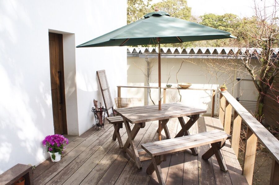 築100年以上の旧家の蔵を、趣のあるカフェ兼着物リメイクショップにリノベーション。 大きなクスの木の木漏れ日と小鳥のさえずりが気持ちのいいテラス席もあります。