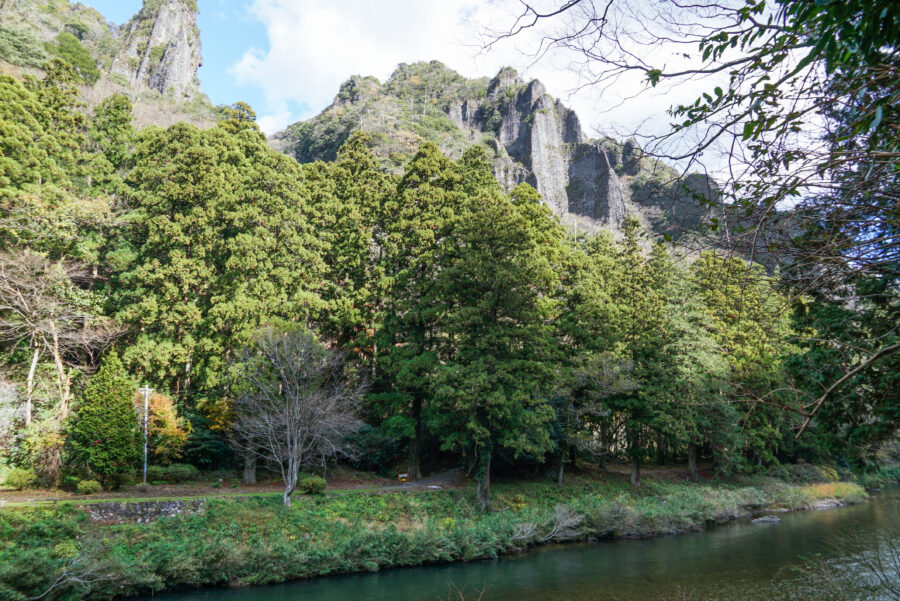 出雲市街地から車でわずか20分ほどの距離に本格的な渓谷があります。 そそり立つ絶壁・岩壁に初夏は新緑、秋は紅葉、冬は雪がよく似合います。 遊歩道を散策したり、オートキャンプや釣り、温泉も楽しめます。