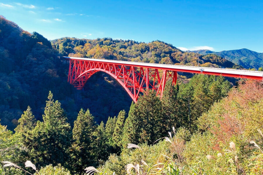 広島県と島根県をつなぐ国道314号線にある、日本最大規模の二重ループ方式道路は「奥出雲おろちループ」と呼ばれています。 道の駅からながめる三井野大橋の赤いアーチが、特に紅葉スポットとして人気。 道の駅にはレストランや売店があり、また周辺には奥出雲鉄の彫刻美術館、遊歩道などがあります。