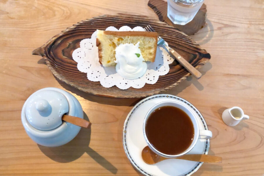 松江市北部の閑静な住宅街にある自家焙煎珈琲とシフォンケーキの店。