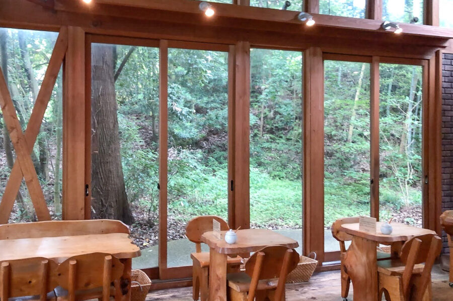 緑に囲まれ、まるで森の中のログハウスにいるような気分になる、いやしのカフェです。