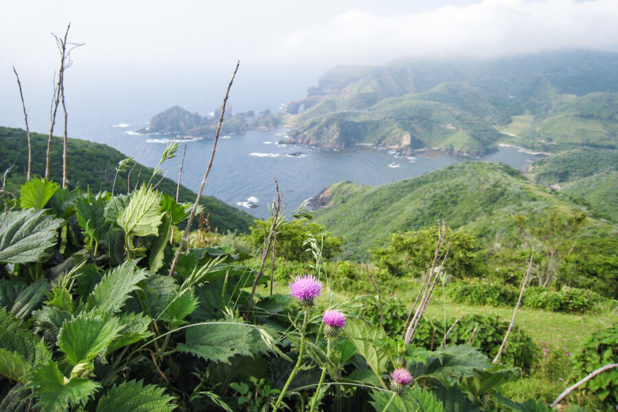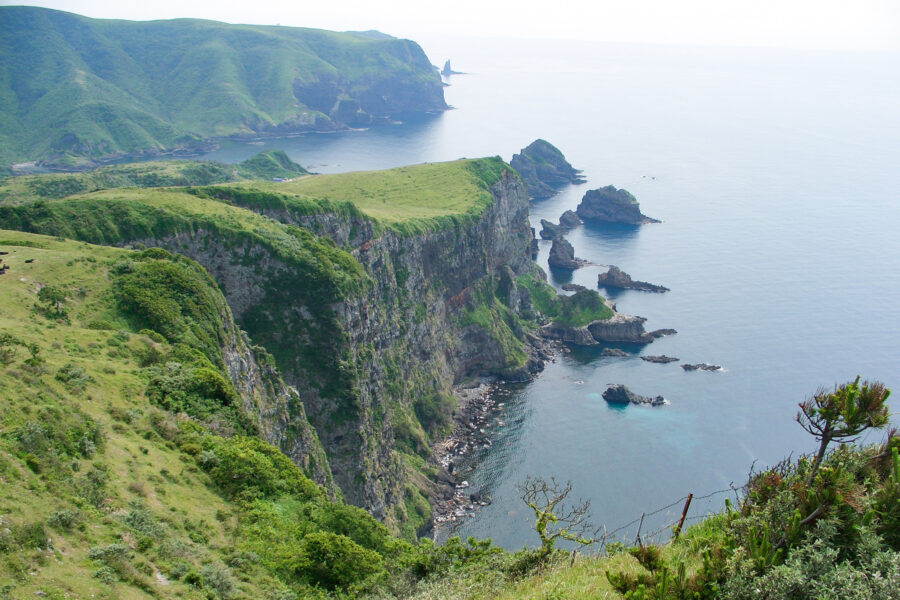 国賀海岸は隠岐ユネスコ世界ジオパークを代表する絶景です。 隠岐西ノ島町の西海岸は、日本海の激しい波風に浸食されて形成された、大迫力の断崖・奇岩が続きます。 中でも摩天崖(まてんがい)は、海面から高さ257m垂直にそそり立つ大絶壁。 崖の上の草原には牛や馬がのんびり草を食んでいます。 海から船で眺める国賀遊覧がおすすめです。