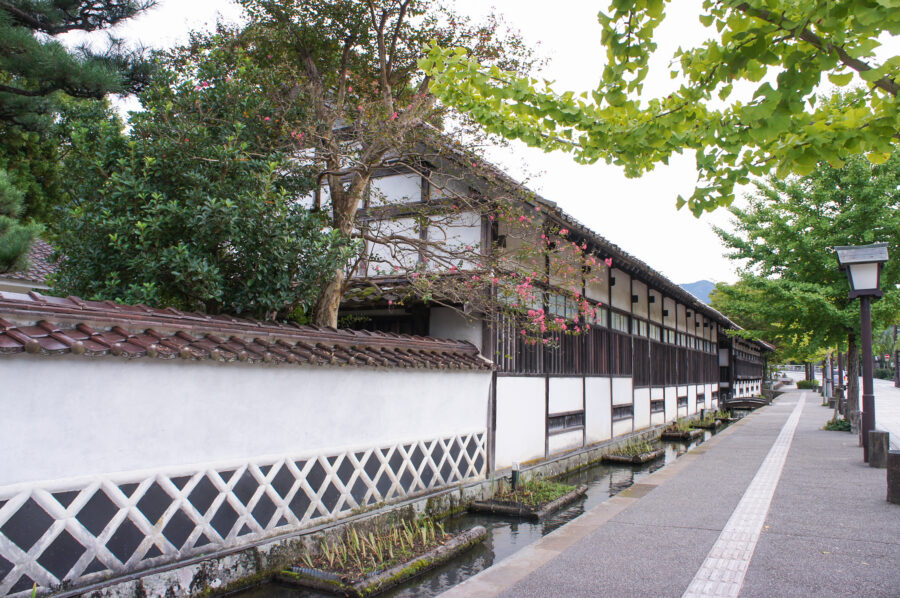 城下町津和野のシンボルとなっている歴史情緒あふれる通り。 かつて家老屋敷が並んでいたところで、白壁に沿った掘割に泳ぐ鯉や初夏の花菖蒲が美しく、藩校養老館や多胡家老門、カトリック教会などの歴史的な建物が残っています。