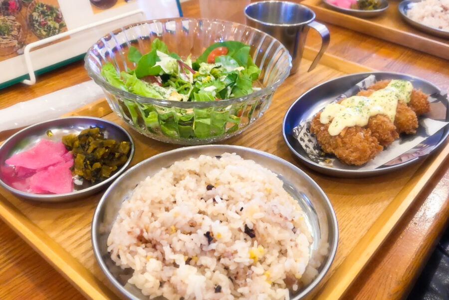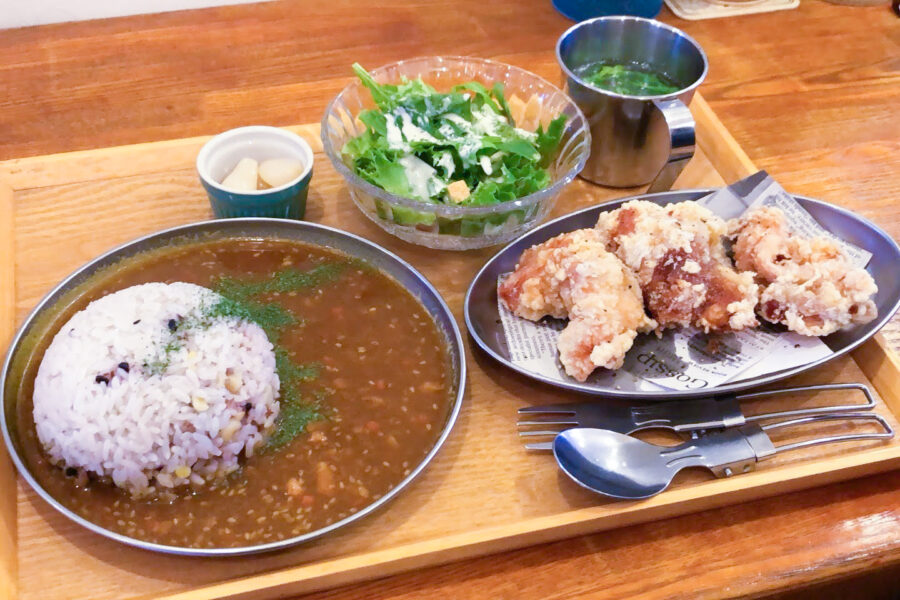 倉吉白壁土蔵群エリアにあり、ご当地限定の唐揚げと朝採れ無農薬野菜の料理を提供しています。 鳥取中部B級グルメバトル優勝のお店。 キャンプをイメージした食器やキーマカレーが人気です。