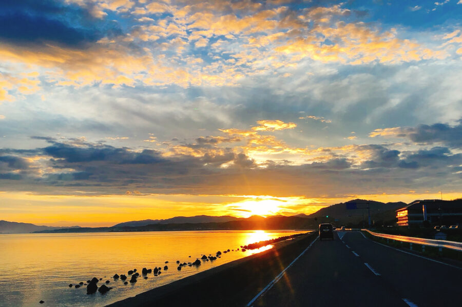 出雲市と松江市の間に広がる宍道湖は、夕景の美しさが有名で日本百景にも選ばれています。 真水と海水の混ざりあった汽水湖で、面積は日本で7番目の大きさです。 宍道湖七珍と呼ばれる、スズキ、モロゲエビ、ウナギ、アマサギ(ワカサギ)、シジミ、コイ、シラウオなどの季節の味覚も豊富です。