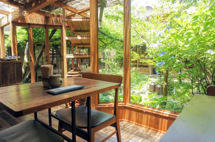 群言堂は、世界遺産石見銀山の町・大森から独自のライフスタイルを発信している、おしゃれなショップです。中庭を眺めながら過ごせるカフェはとても居心地のいい場所。
