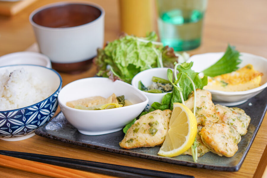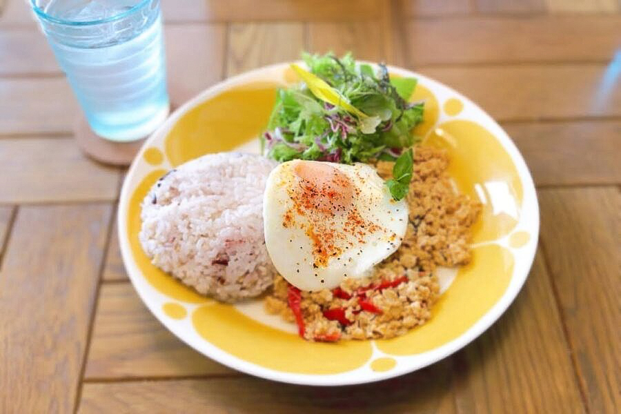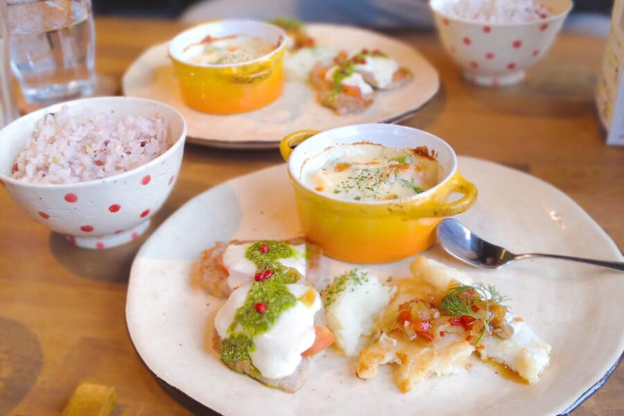 地元食材で作られたランチやスイーツが、陶芸家であるオーナー作の食器で味わうことができます。