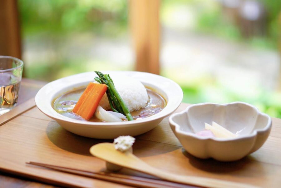 地元の畑で採れた野菜をふんだんに使って料理しており、特に「牛すじトロトロハヤシ」が人気です。
