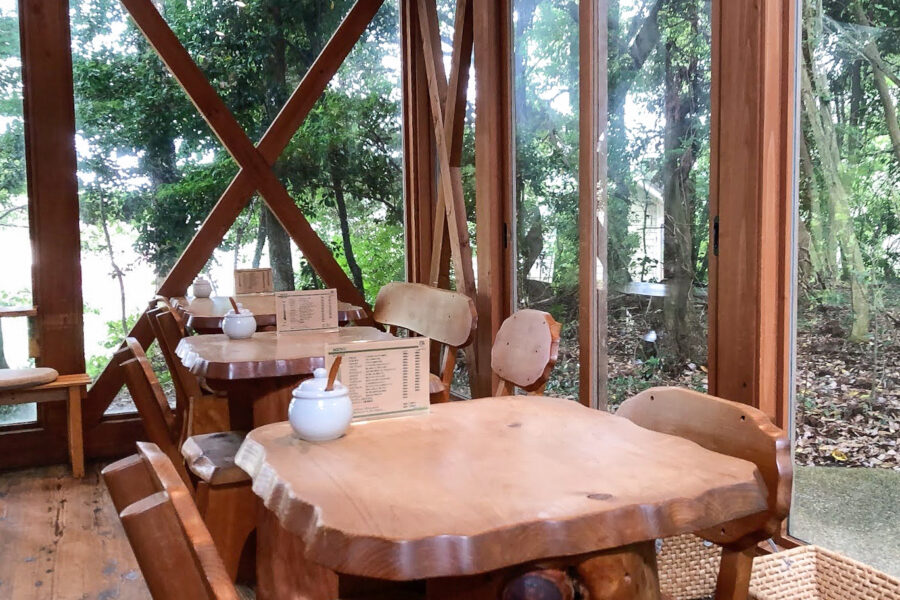 緑に囲まれ、まるで森の中のログハウスにいるような気分になる、いやしのカフェです。