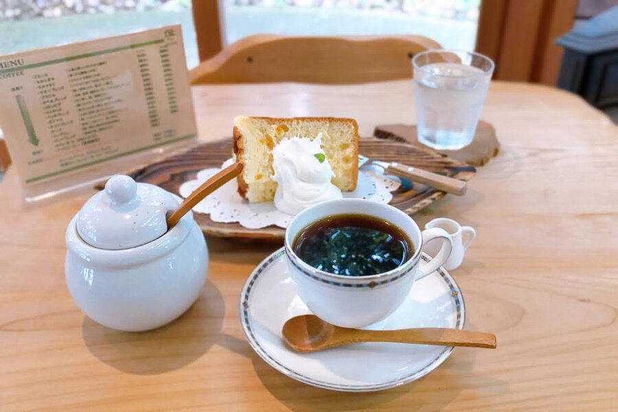 松江市北部の閑静な住宅街にある自家焙煎珈琲とシフォンケーキの店。