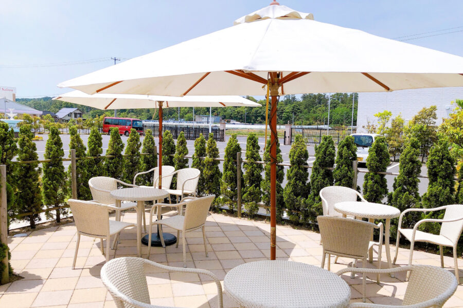 「GARB CLIFF TERRACE Izumo」は、全室オーシャンビューの崖の中ホテルや、大型パーキングエリアなどからなる複合施設「WINDY FARM ATMOSPHERE」にある、夕日を臨む大型レストラン。
