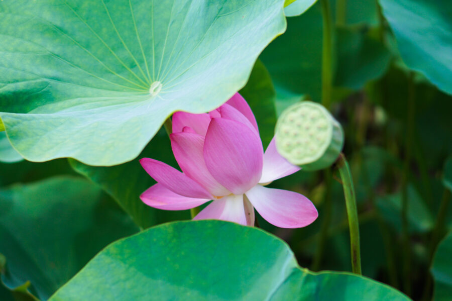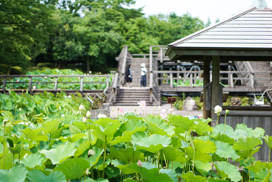 伯耆古代の丘公園では、春から初夏にかけてアジサイやフジ、古代ハスが咲き、秋にはシュウメイギクなど四季折々の草花を楽しむことができます。