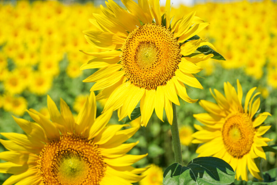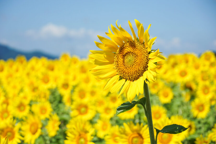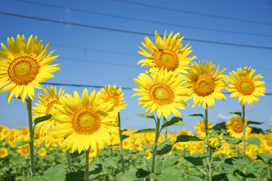 伯耆町内のJR伯備線沿いにあるひまわり畑。