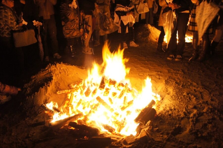 この地域では神在祭は「お忌祭り」とも呼ばれており、もとは神名火山から天降る神霊を待ちうける、忌籠り(いみごもり)の儀礼でした。