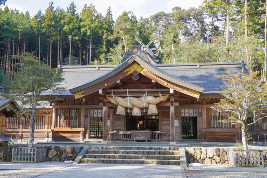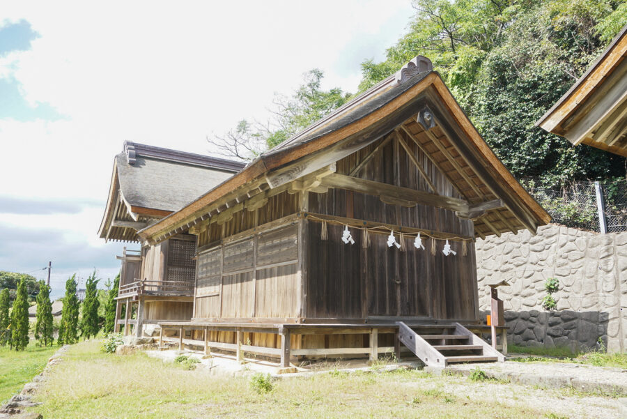天照大神を祀る日沉宮(ひしずみのみや/下の宮)と、やや小高い場所にスサノオノミコトを祀る神の宮(かんのみや/上の宮)の2つの社殿があります。
