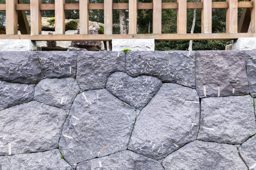 境内の石垣にハート型の石があり、最近パワースポットとして注目されています。