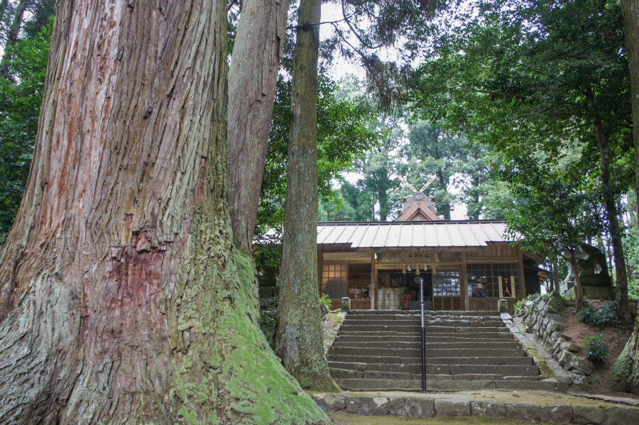 本殿背後の杉の巨木にはパワーが宿ると言われ、多くの参拝者が訪れます。