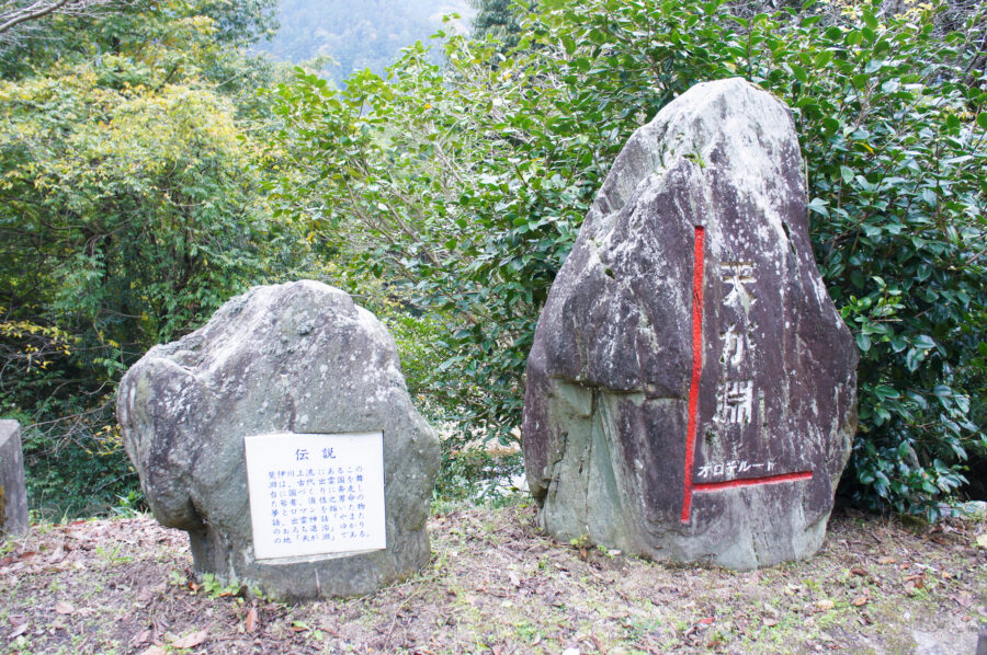 国道314号線沿いの斐伊川上流の雲南市木次町と吉田町の境にある淵は、ヤマタノオロチの棲み家だったという伝説があります。