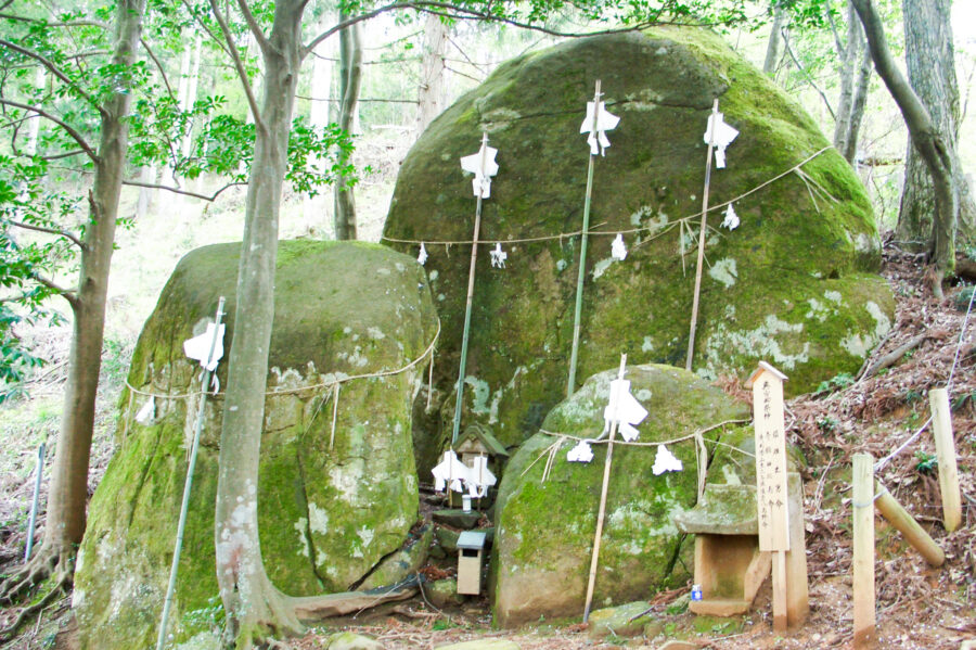 背後の山にある奥宮には「夫婦岩」など三つの巨石からなる磐座があります。