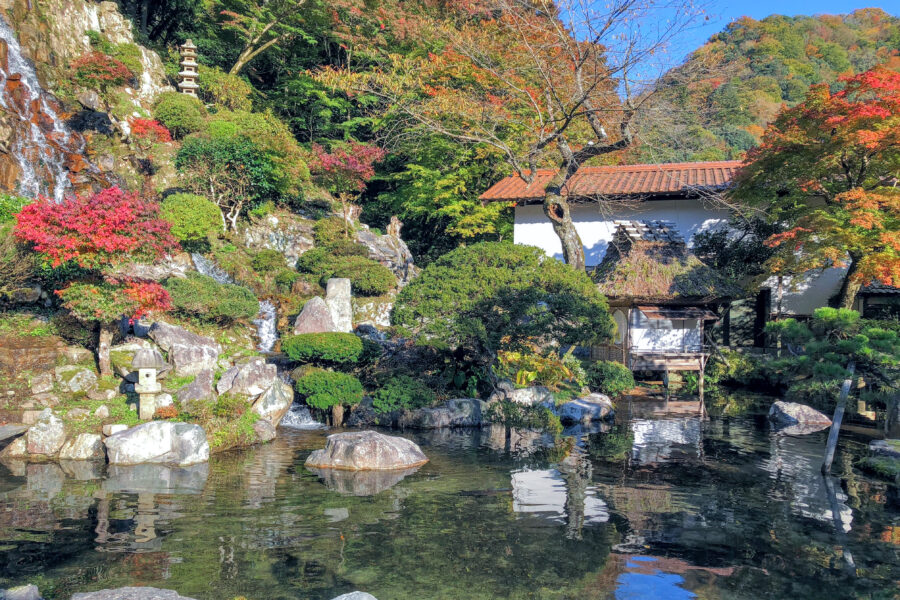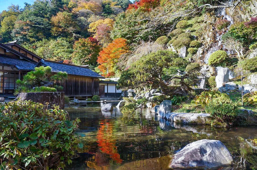 津和野の市街地から山間部へ約8kmほど入ったところにある、かつて石見銅山で繁栄した豪族堀氏の名園。紅葉の時期の庭園が見事で、ライトアップの催しもあります。