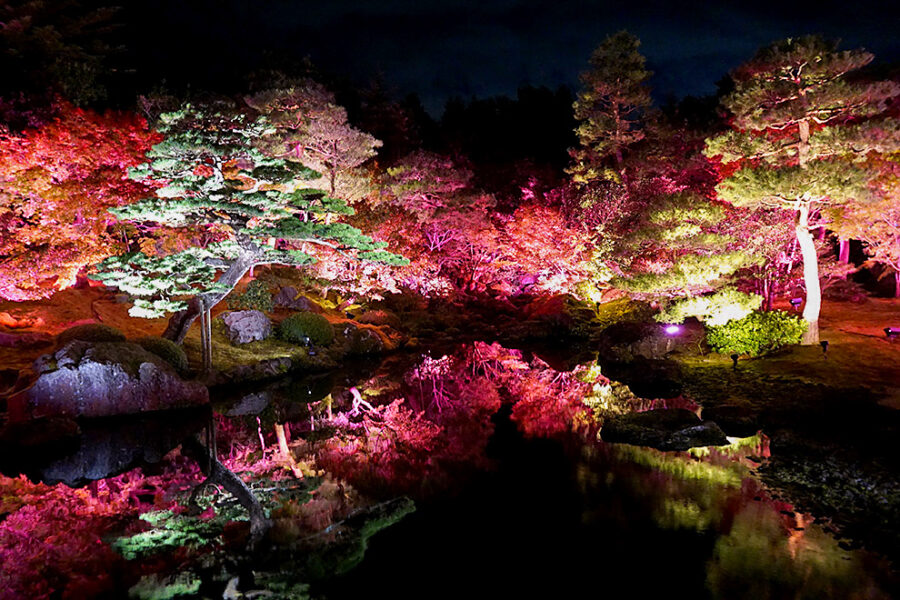 「紅葉ライトアップイルミネーション」は絶景で、まるでイリュージョンの世界を散策しているよう。
