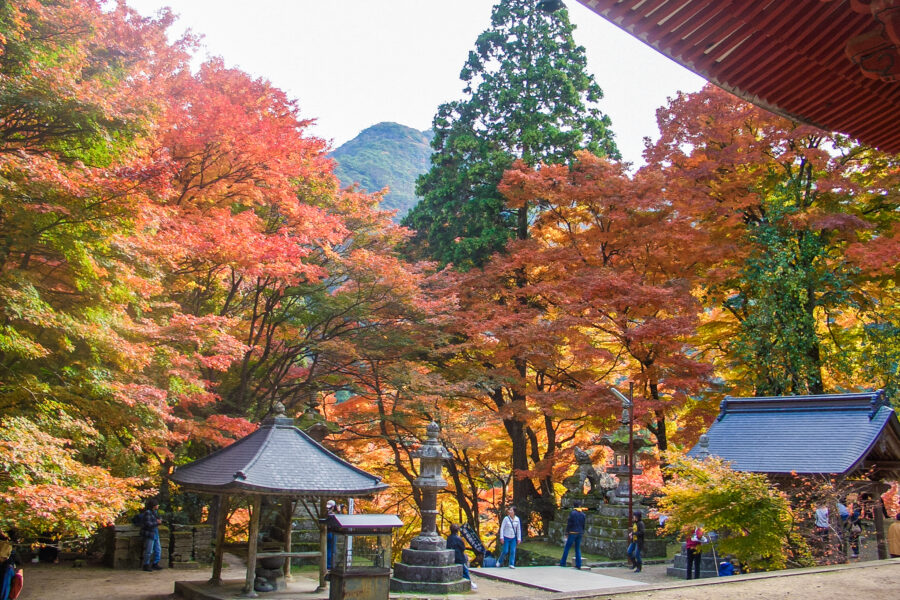 紅葉の時期には山一面が色づき、多くの人でにぎわいます。