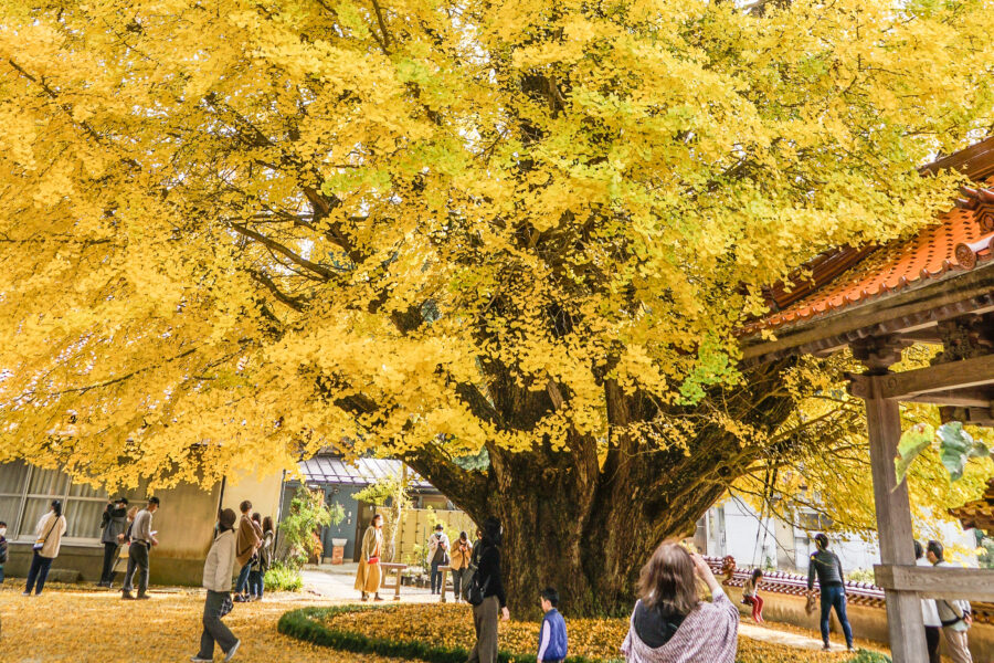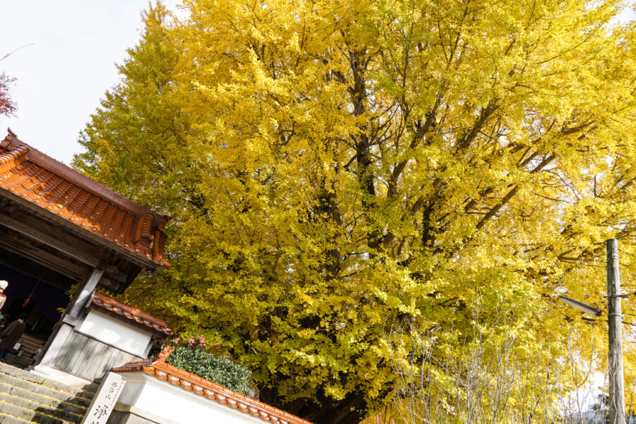 三瓶山の中腹にある浄善寺(じょうぜんじ)の大イチョウは、県内でも最大級。