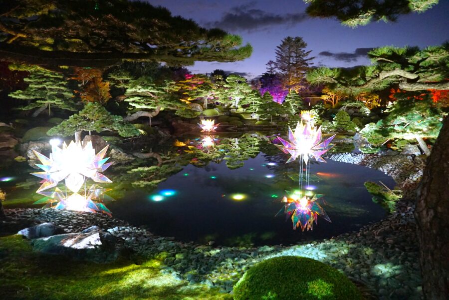 【津和野 堀庭園】秋の紅葉ライトアップ