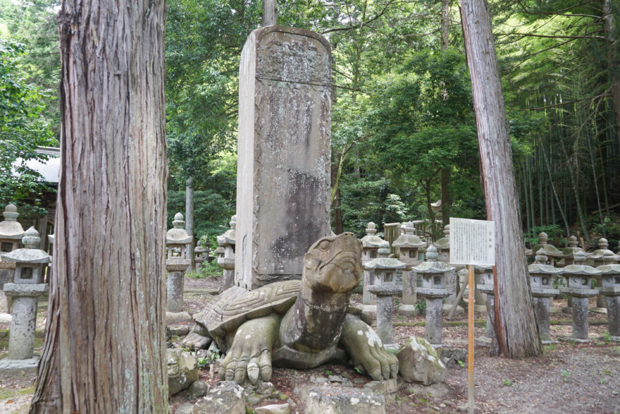 六代藩主の寿蔵碑は巨大な亀の石像を台座として建てられています。