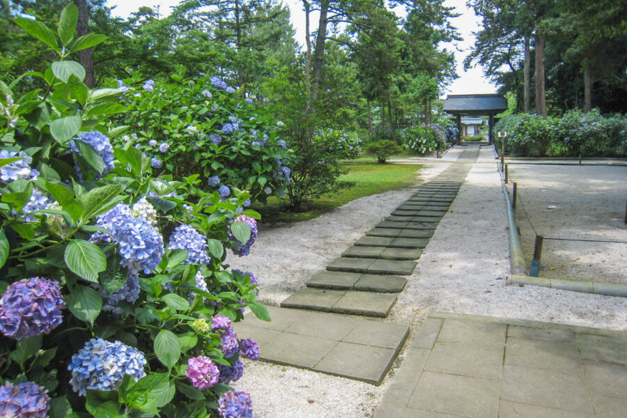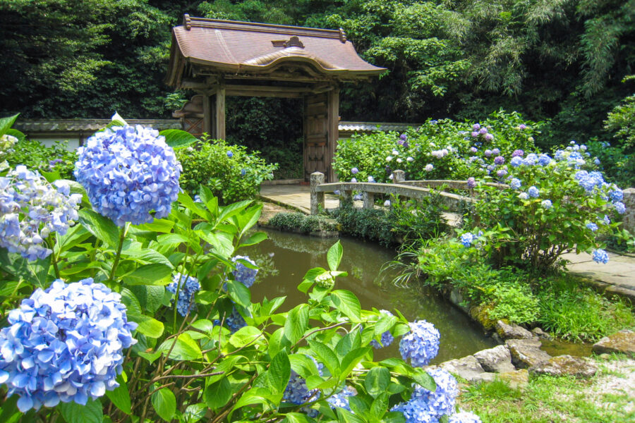 梅雨時には約3万本のアジサイが咲き誇り、アジサイ寺としても有名です。