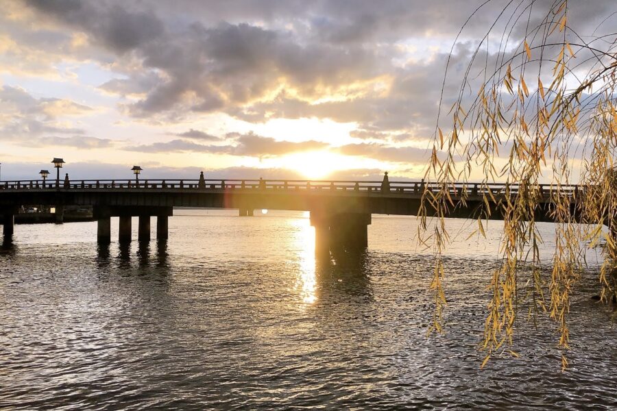 松江大橋と宍道湖に沈む夕日